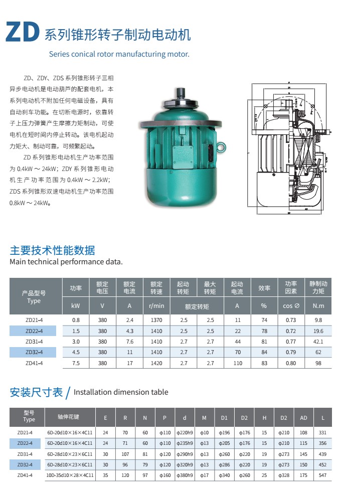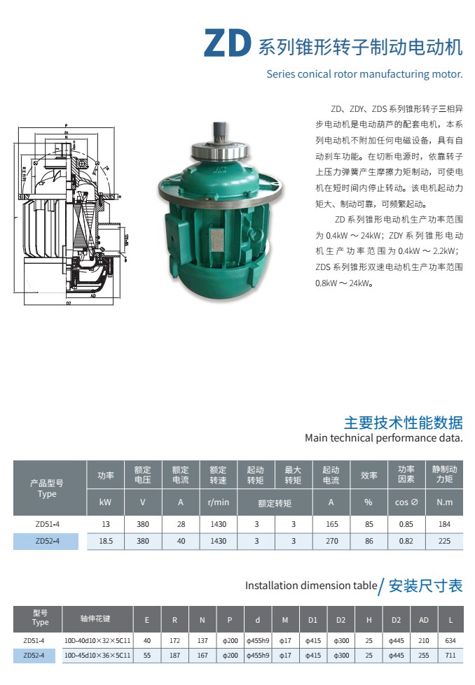 ZD系列錐形轉(zhuǎn)子制動(dòng)電動(dòng)機(jī)
